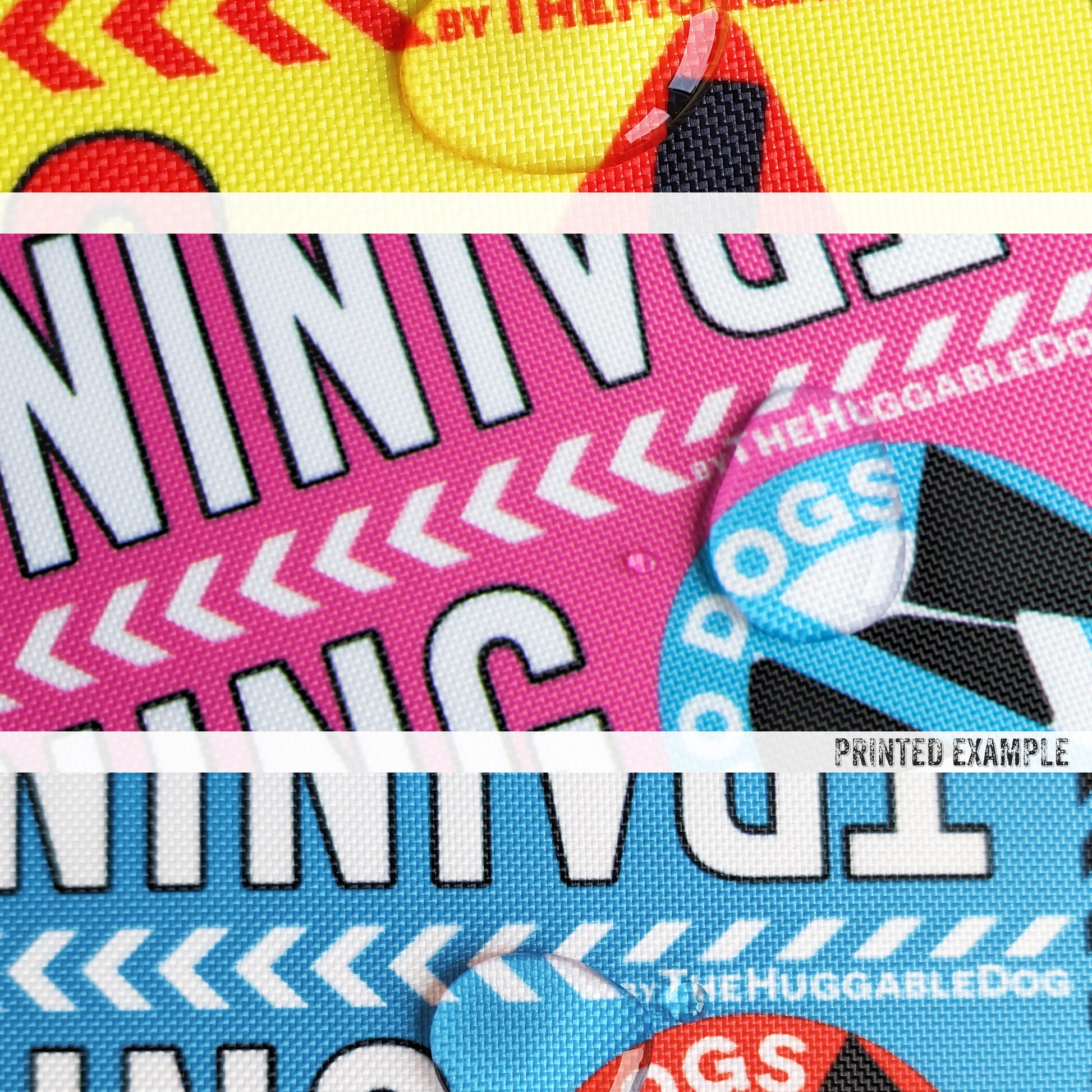 This item is already printed, it cannot be altered. However, you can let me know the width of your leash (your leash thickness) and I will fit the snap buttons for you on the sleeves. Otherwise standard fit would be for leashes of approx 1 inch / 2.5cm. wide.