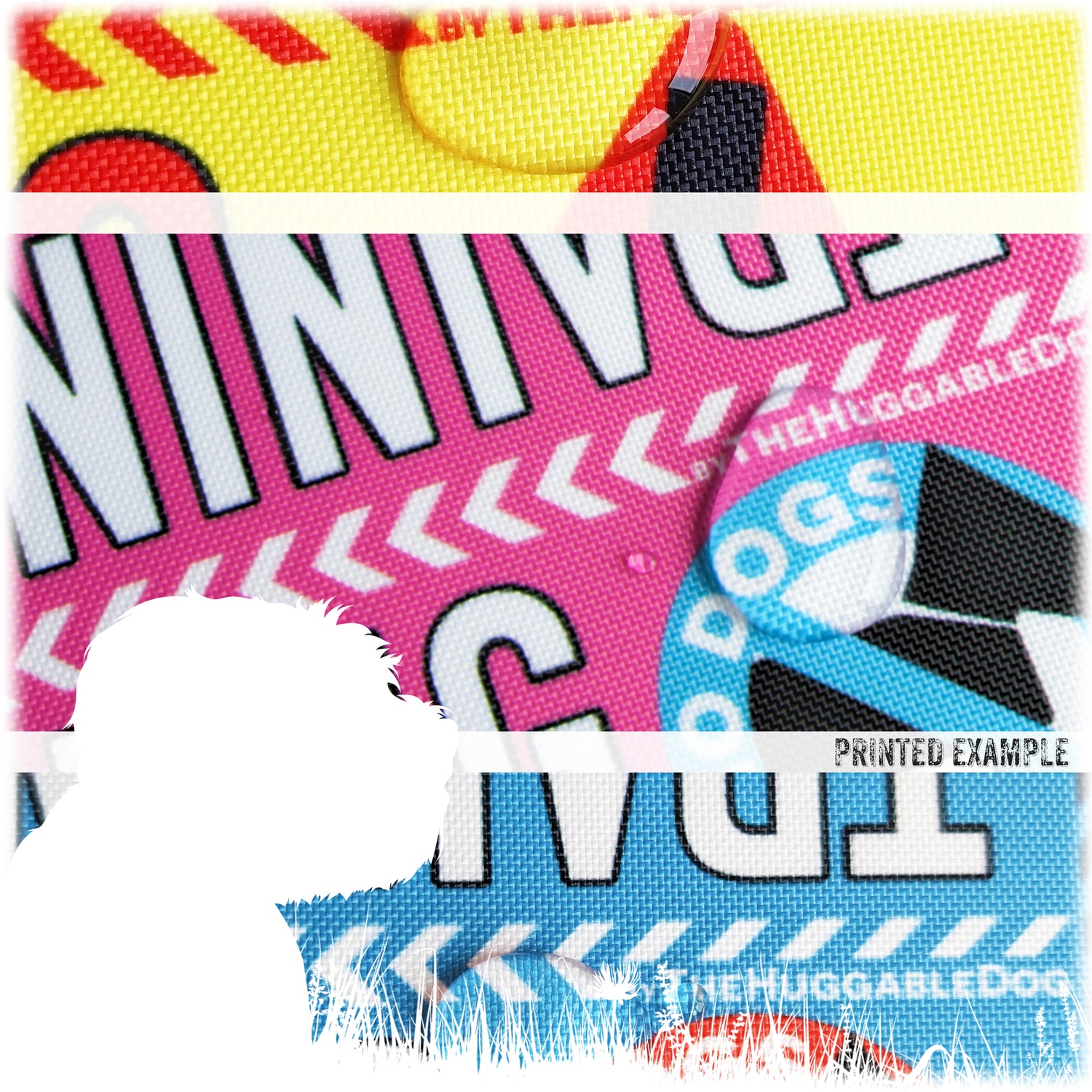 For this sleeve, the design has been printed on both sides on medium weight polyester waterproof fabric, using dye sublimation. This print process is excellent at reproducing strong colour.
