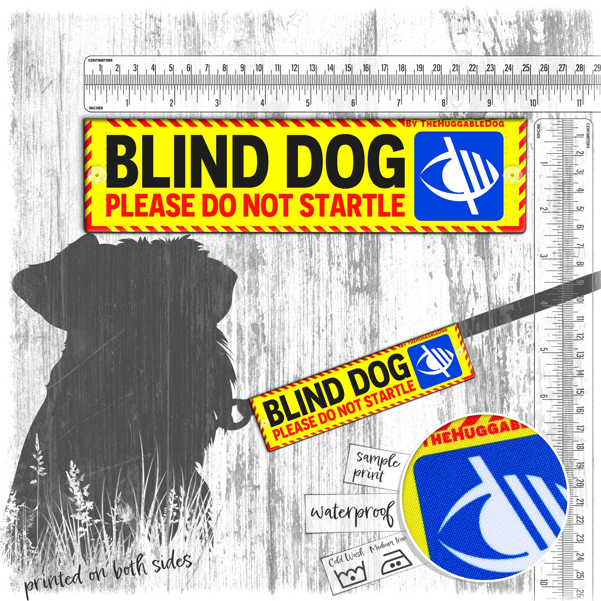 "BLIND DOG, please do not startle". Warning leash sleeves for dog training.