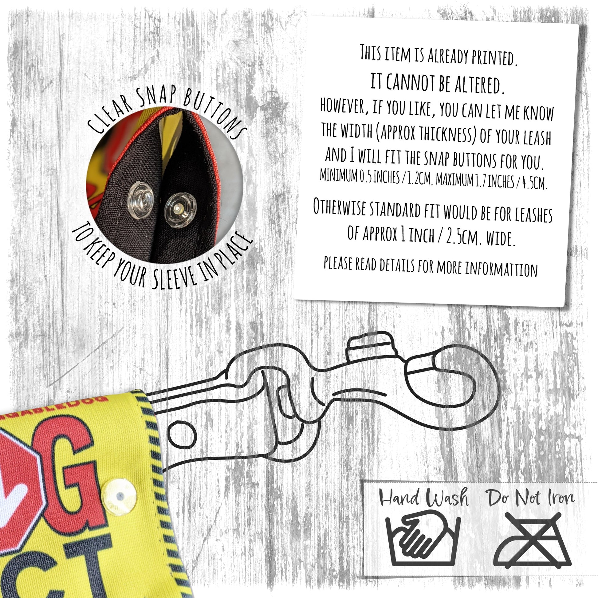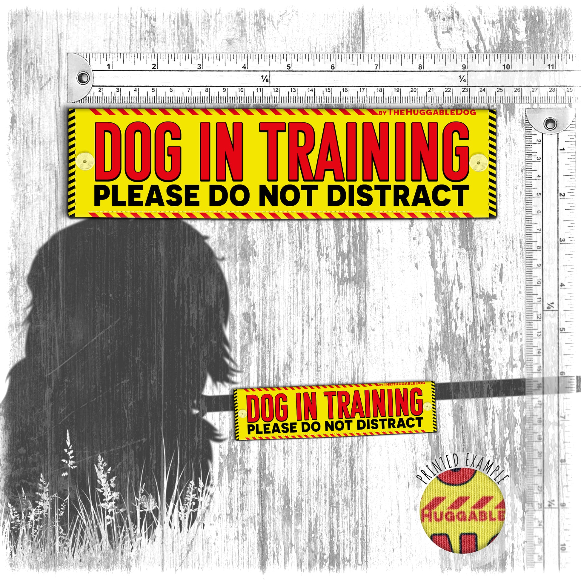 "DOG in training, please do not distract". Leash sleeve for dog training.