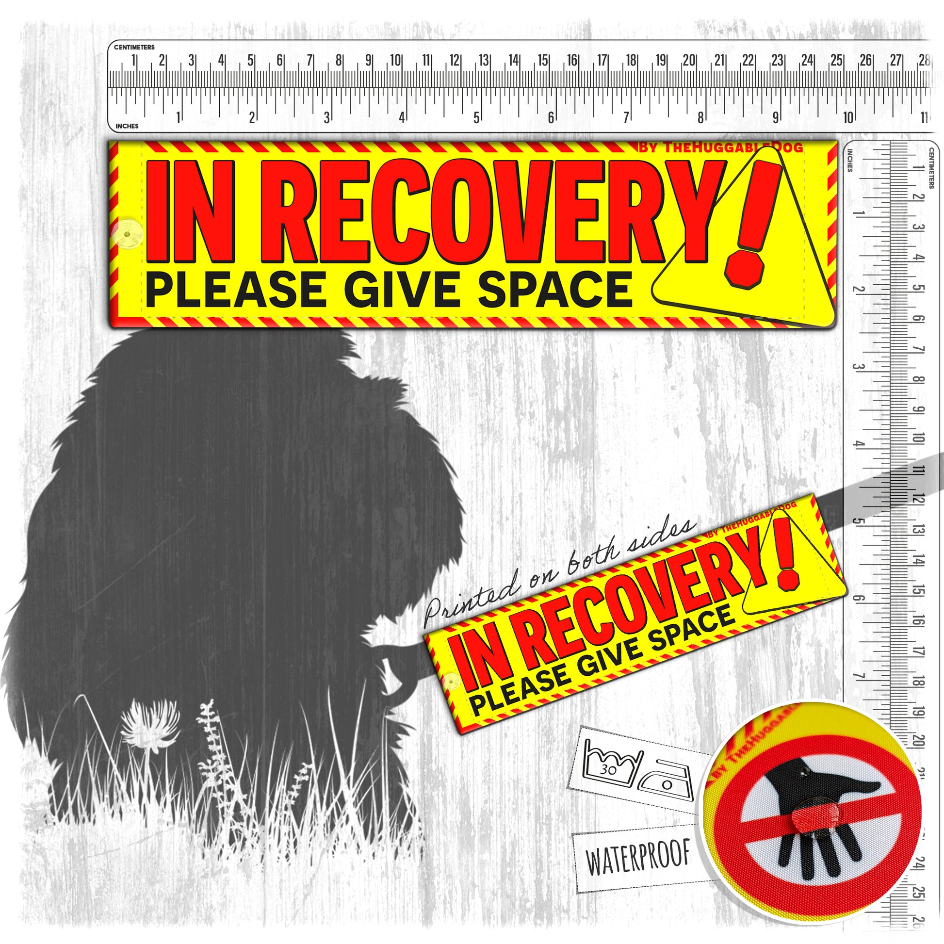 32-"IN RECOVERY, please give space". Warning leash sleeves.