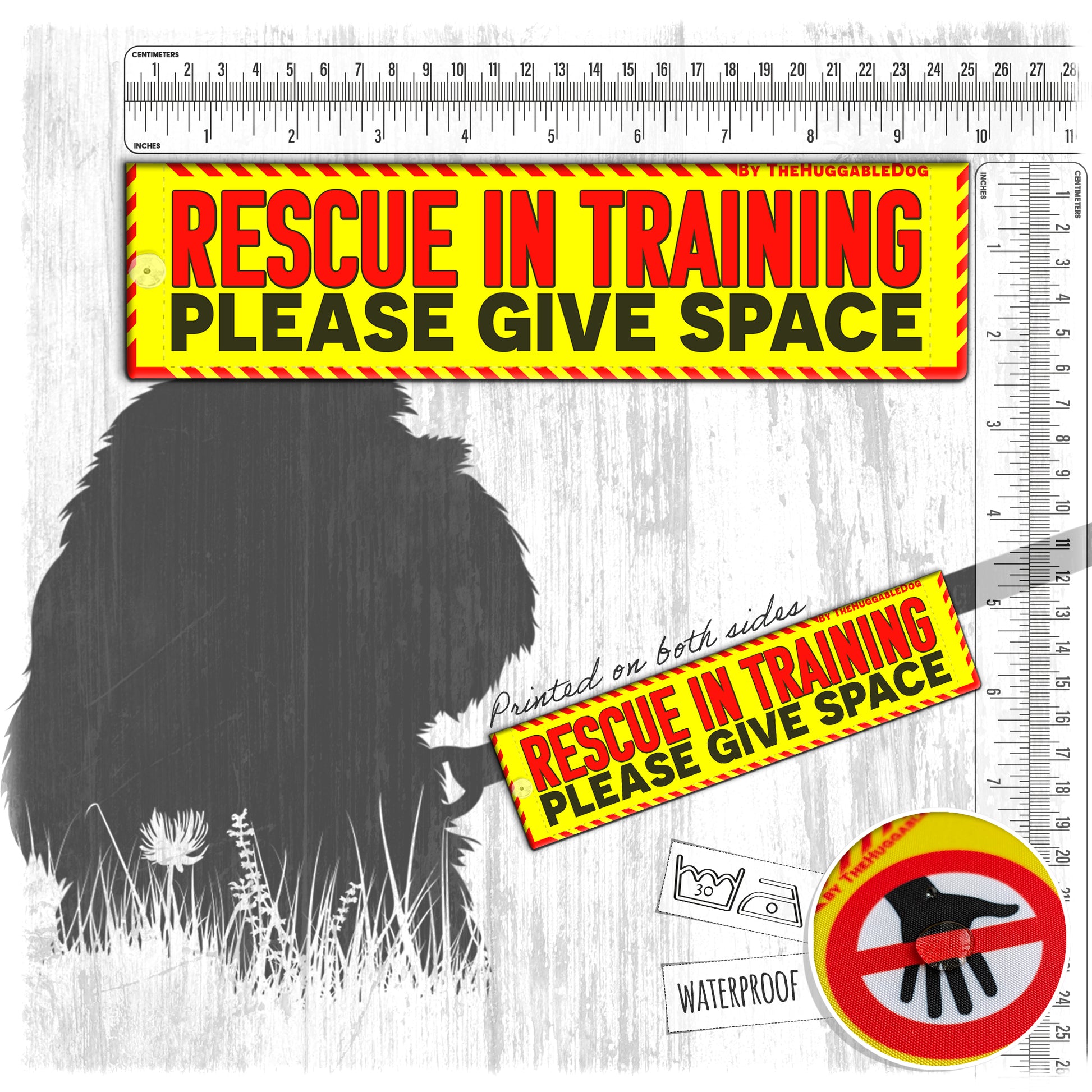 21-"RESCUE In TRAINING, please give space". Warning leash sleeves.